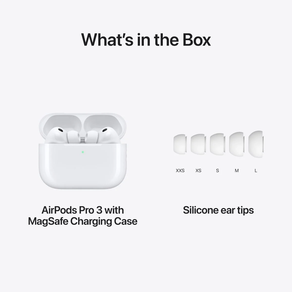 • Charging case: AirPods Pro 3 come with a MagSafe Charging Case (USB-C) with a speaker and lanyard loop, making charging and locating the case more convenient.